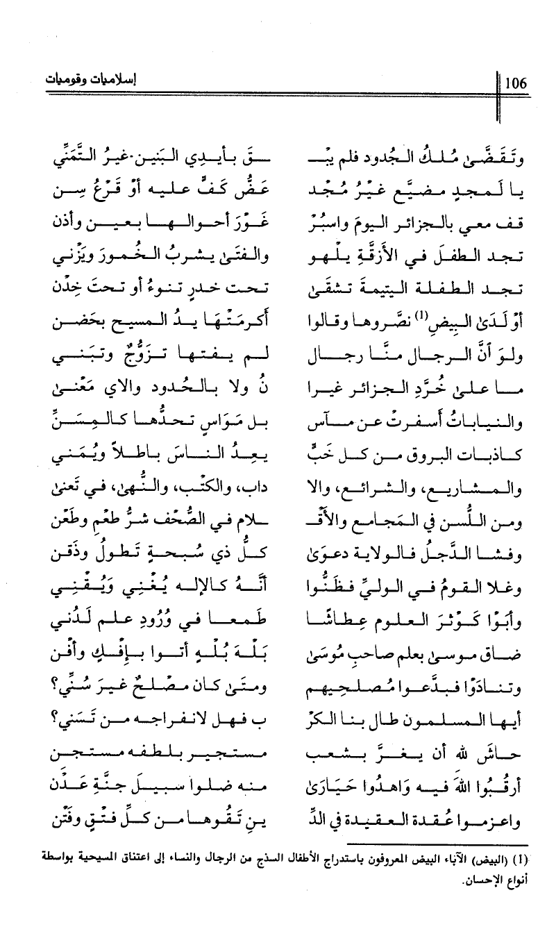 أو لدى البيض (1) نصروها وقالوا …*… أكرمتها يد المسيح بحضن