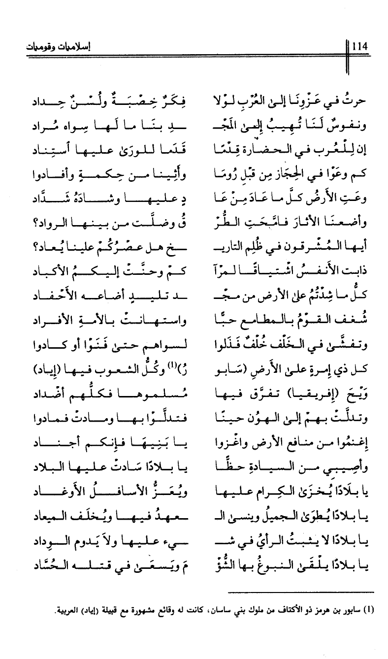 (1) سابور بن هرمز ذو الأكتاف من ملوك بني ساسان، كانت له وقائع مشهورة مع قبيلة (إياد) العربية.