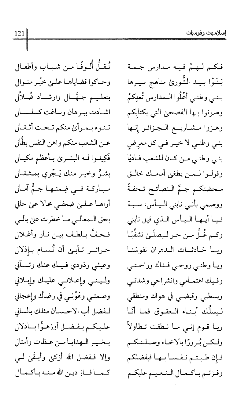 بني وطني أعلوا المدارس تعلكم …*… بتعليم جهال وارشاد ضلال