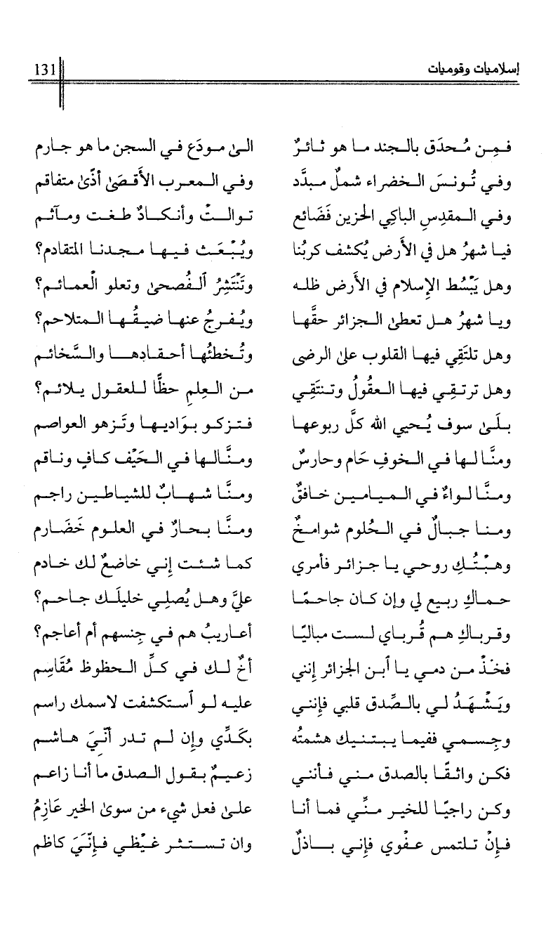 وهبتك روحي يا جزائر فأمري …*… كما شئت إني خاضع لك خادم