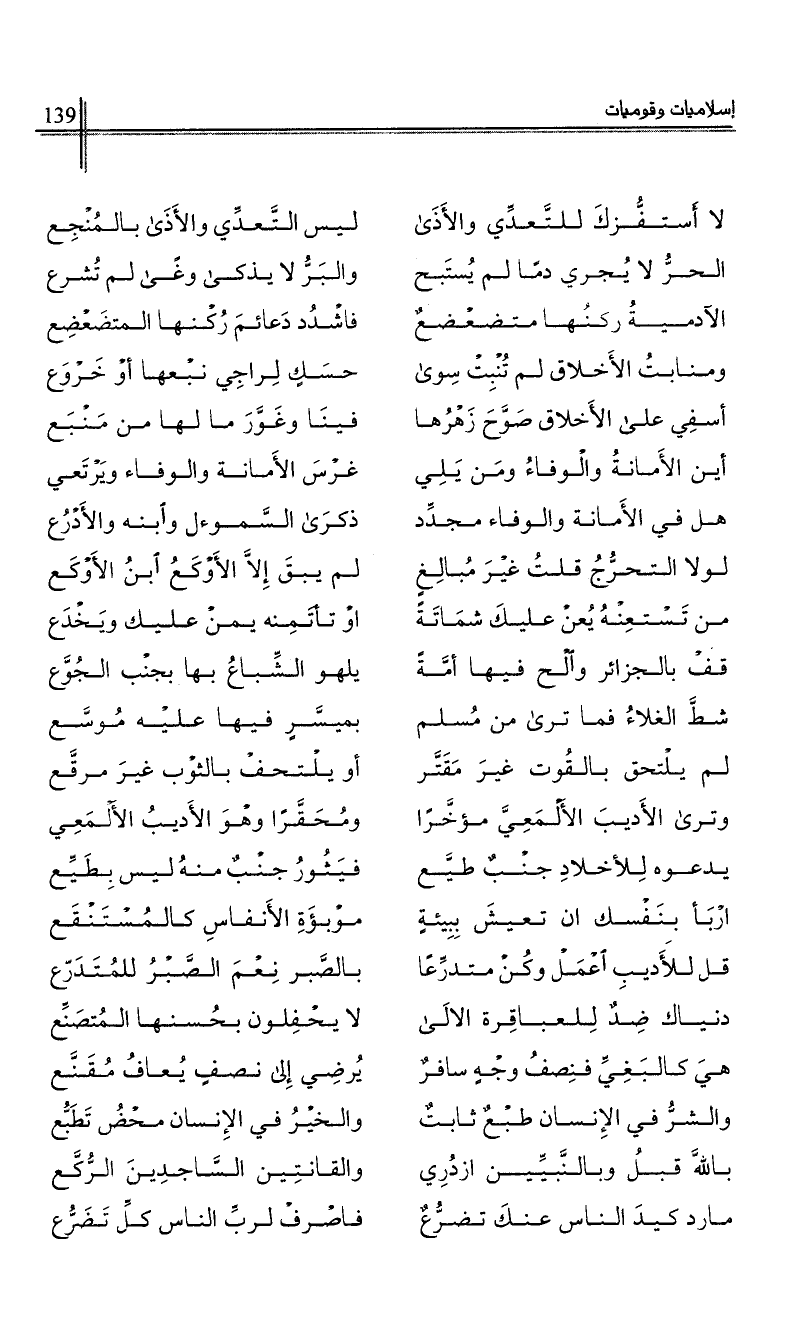 قف بالجزائر والح فيها أمه …*… يلهو الشباع بها بجنب الجوع