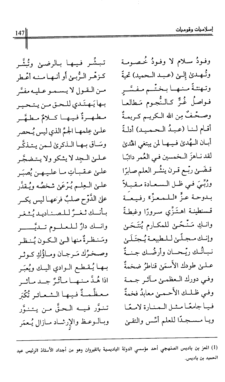 (1) المعز بن باديس المنهجي أحد مؤسسي الدولة الباديسية بالقيروان وهو من أجداد الأستاذ الرئيس عبد الحميد بن باديس.