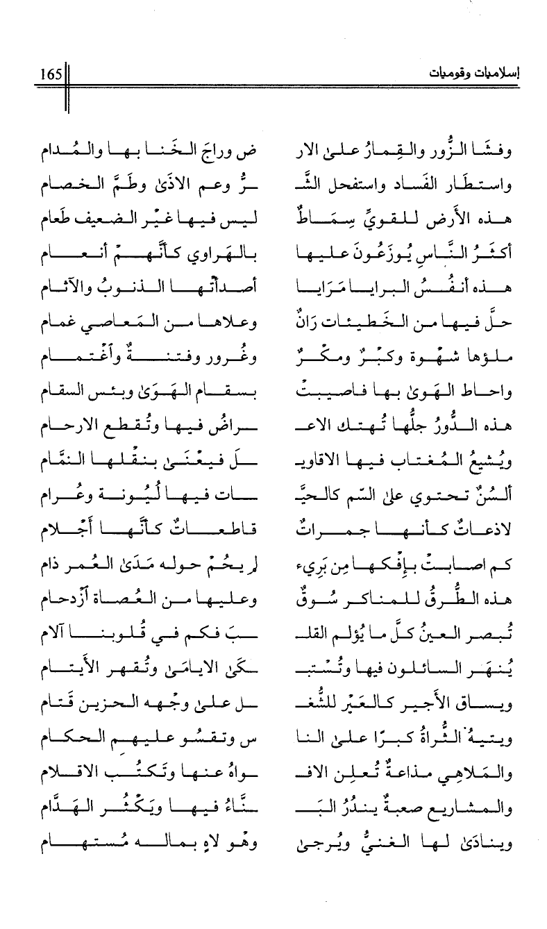 وفشا الزور والقمار على الار …*… ض وراج الخنا بها والمدام
