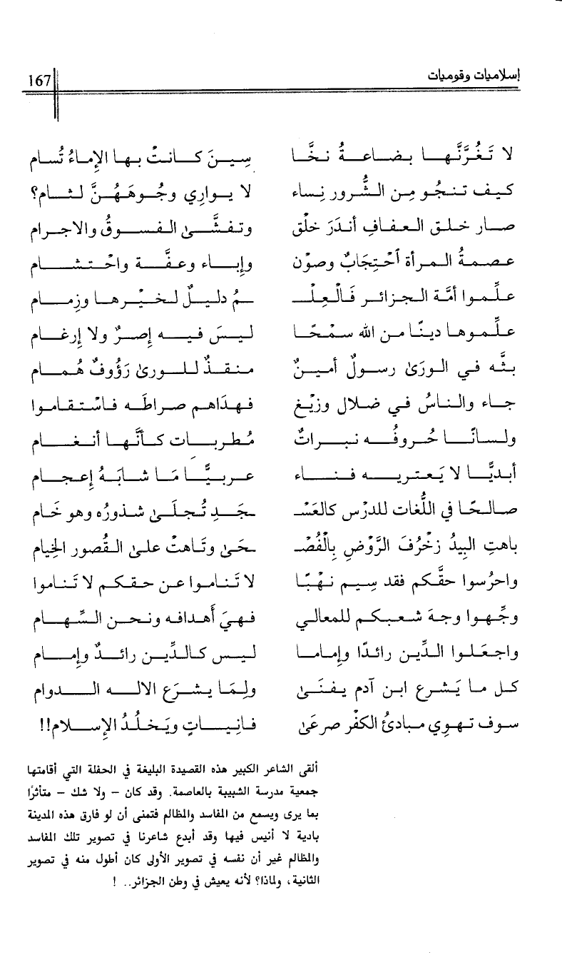 علموا أمة الجزائر فالعلـ …*… ـم دليل لخيرها وزمام