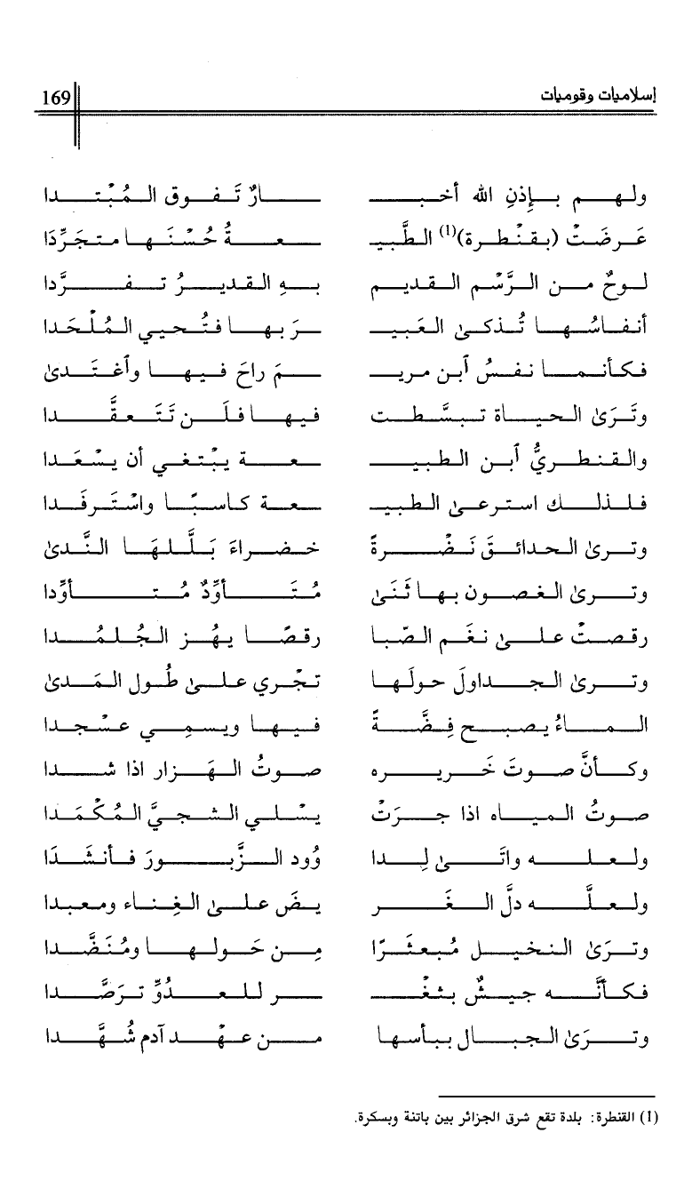 (1) القنطرة ة بلدة تقع شرق الجزائر بين باتنة وبسكرة.