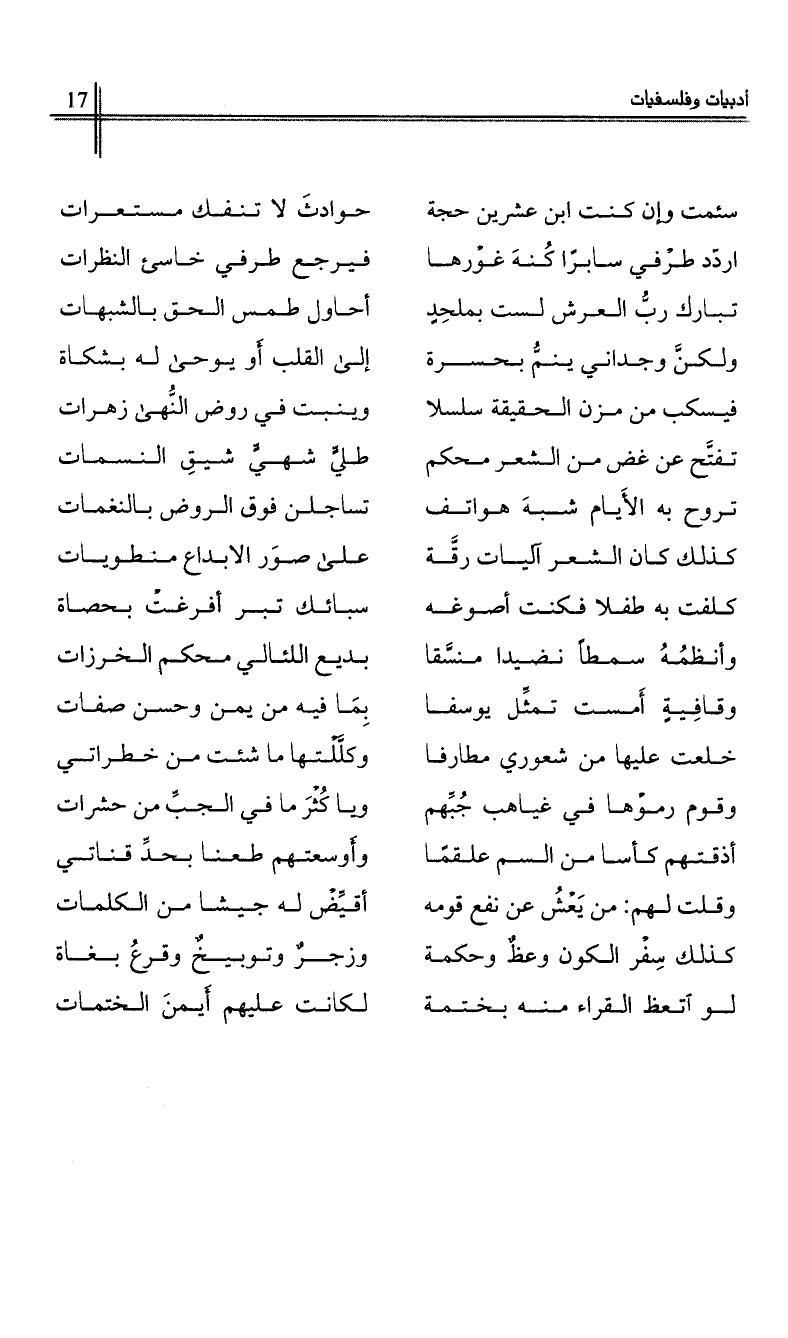 فيسكب من مزن الحقيقة سلسلا …*… وينبت في روض النهى زهرات