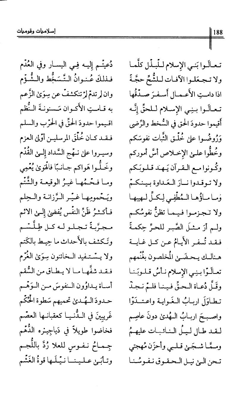 تعالوا بني الإسلام للحق إنه …*… به قامت الأكوان مسنونة النظم