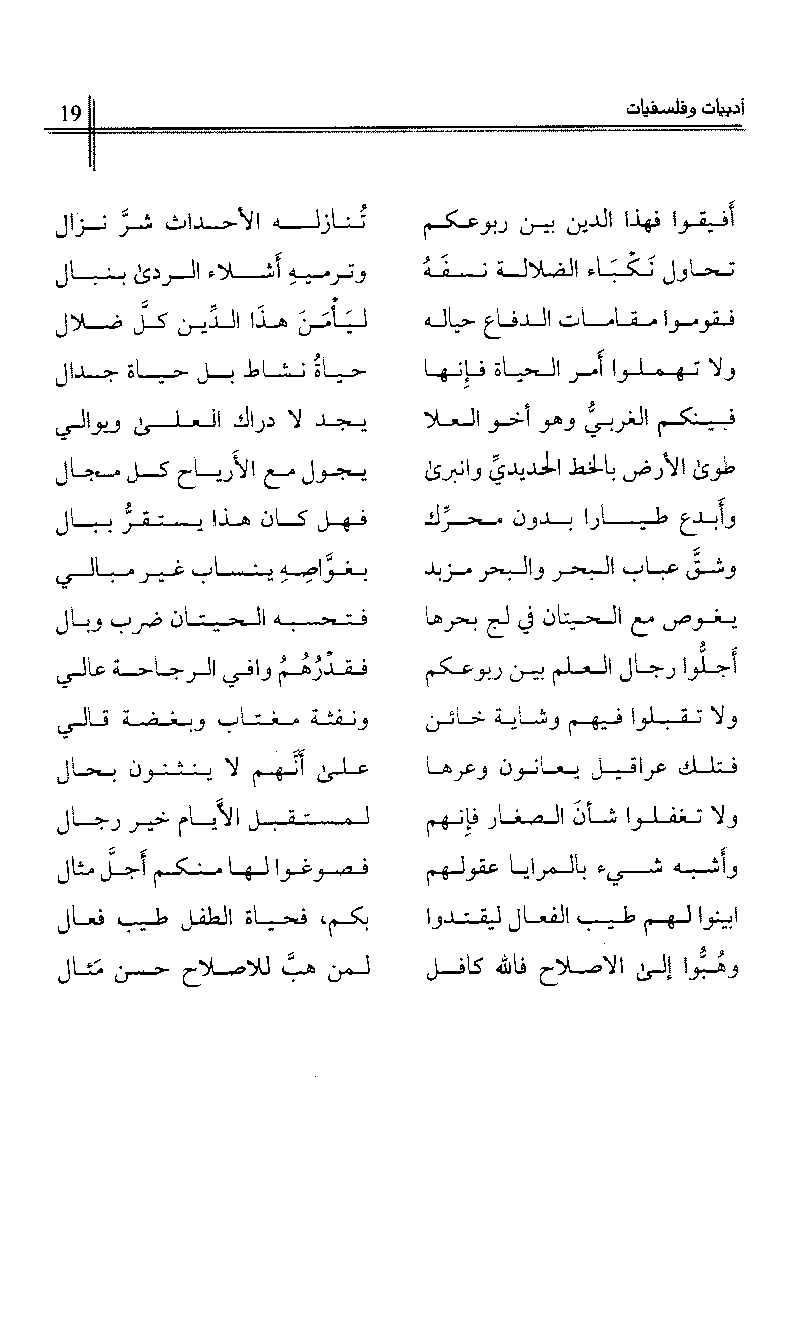 ولا تهملوا أمر الحياة فإنها …*… حياة نشاط بل حياة جدال