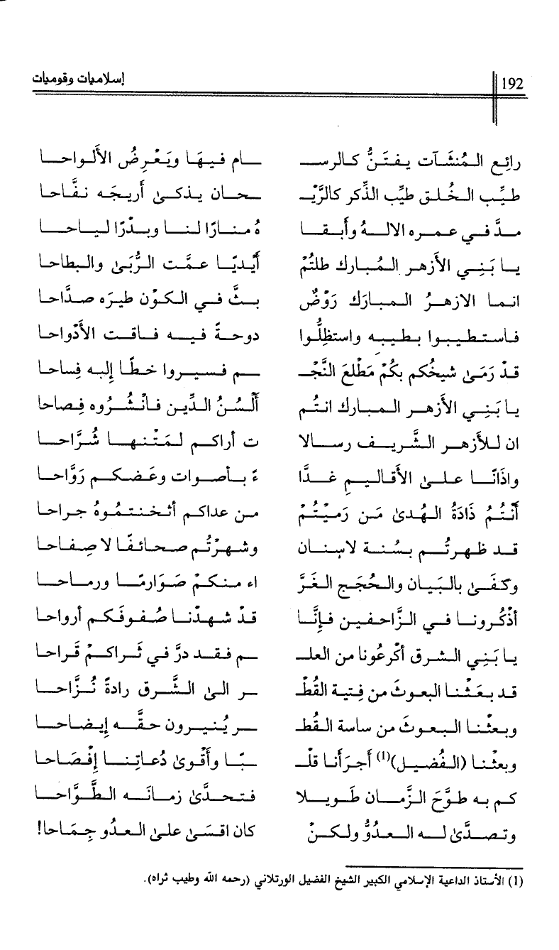 يا بني الأزهر المبارك انتم …*… السن الدين فانشروه فصاحا