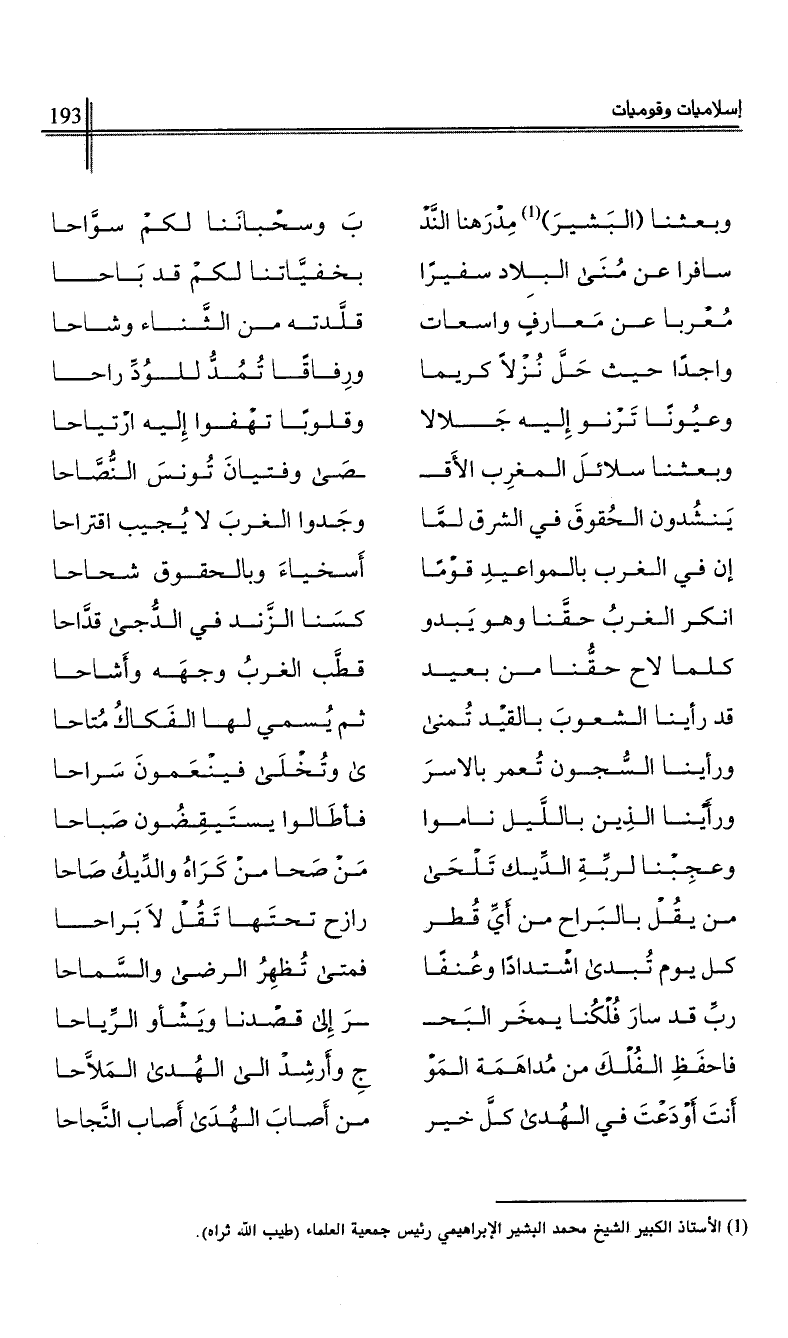 (1) الأستاذ الكبير الشيخ محمد البشير الإبراهيمي رئيس جمعية العلماء (طيب الله ثراه).