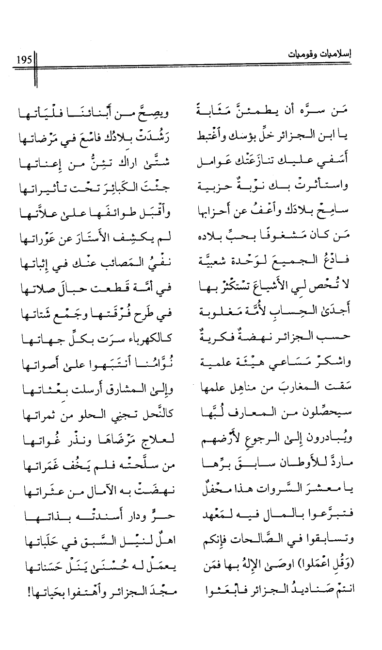 يا ابن الجزائر خل بؤسك واغتبط …*… رشدت بلادك فاسع في مرضاتها