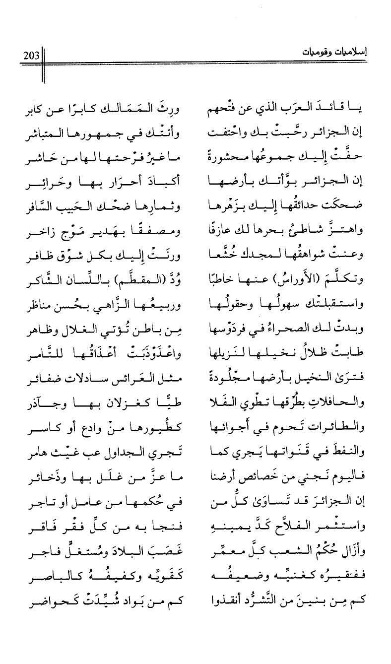 وتكلم (الأوراس) عنها خاطبا …*… ود (المقطم) باللسان الشاكر