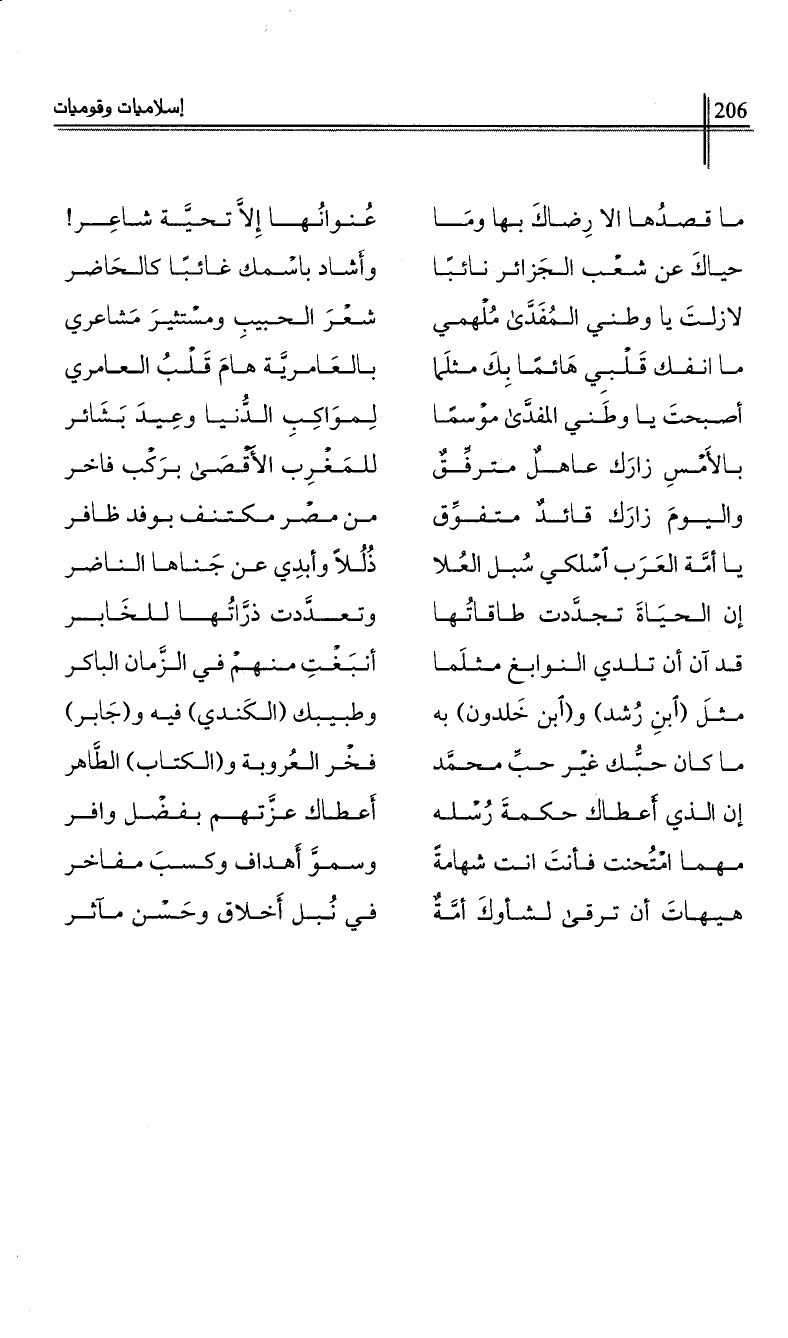 حياك عن شعب الجزائر نائبا …*… وأشاد باسمك غائبا كالحاضر