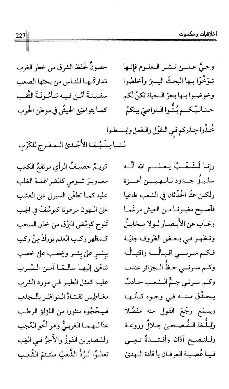 وحي على نشر العلوم فإنها …*… حصون لحفظ الشرق من خطر الغرب