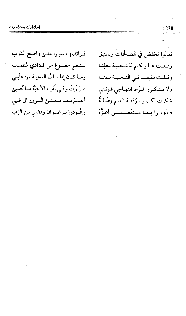 فدوموا بها مستعصمين أعزة …*… وعودوا برضوان وفضل من الرب