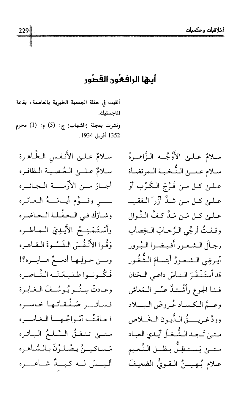 ألقيت في حفلة الجمعية الخيرية بالعاصمة، بقاعة الماجستيك.