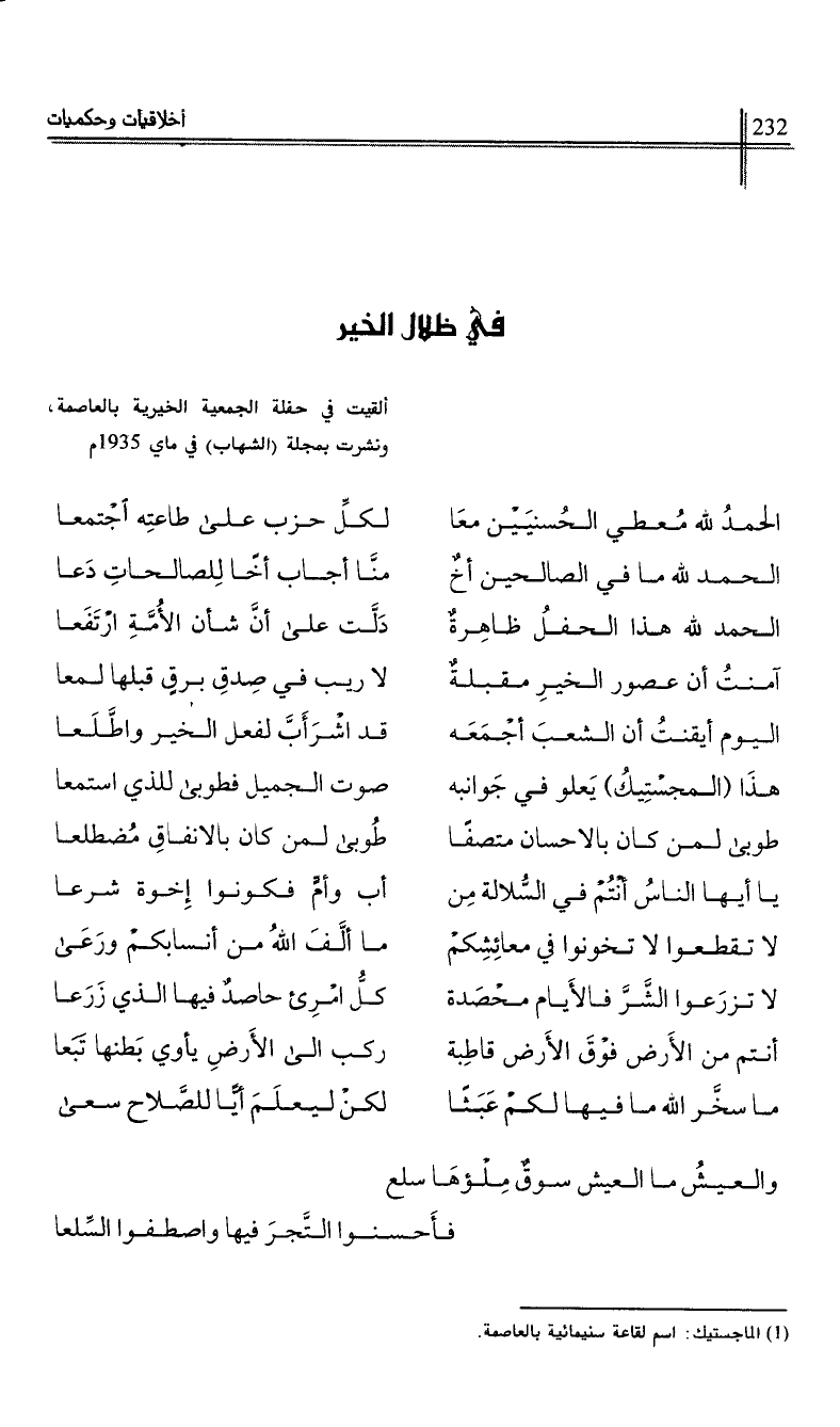 ونشرت بمجلة (الشهاب) في ماي 1935م.