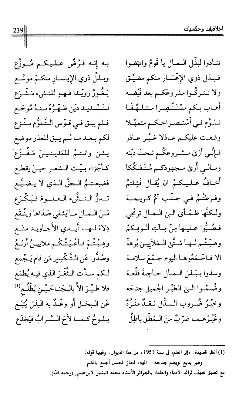 مع تعليق لطيف لرائد الأدباء والعلماء بالجزائر الأشستذ محمد البشير الابراهيمي (رحمه الله).