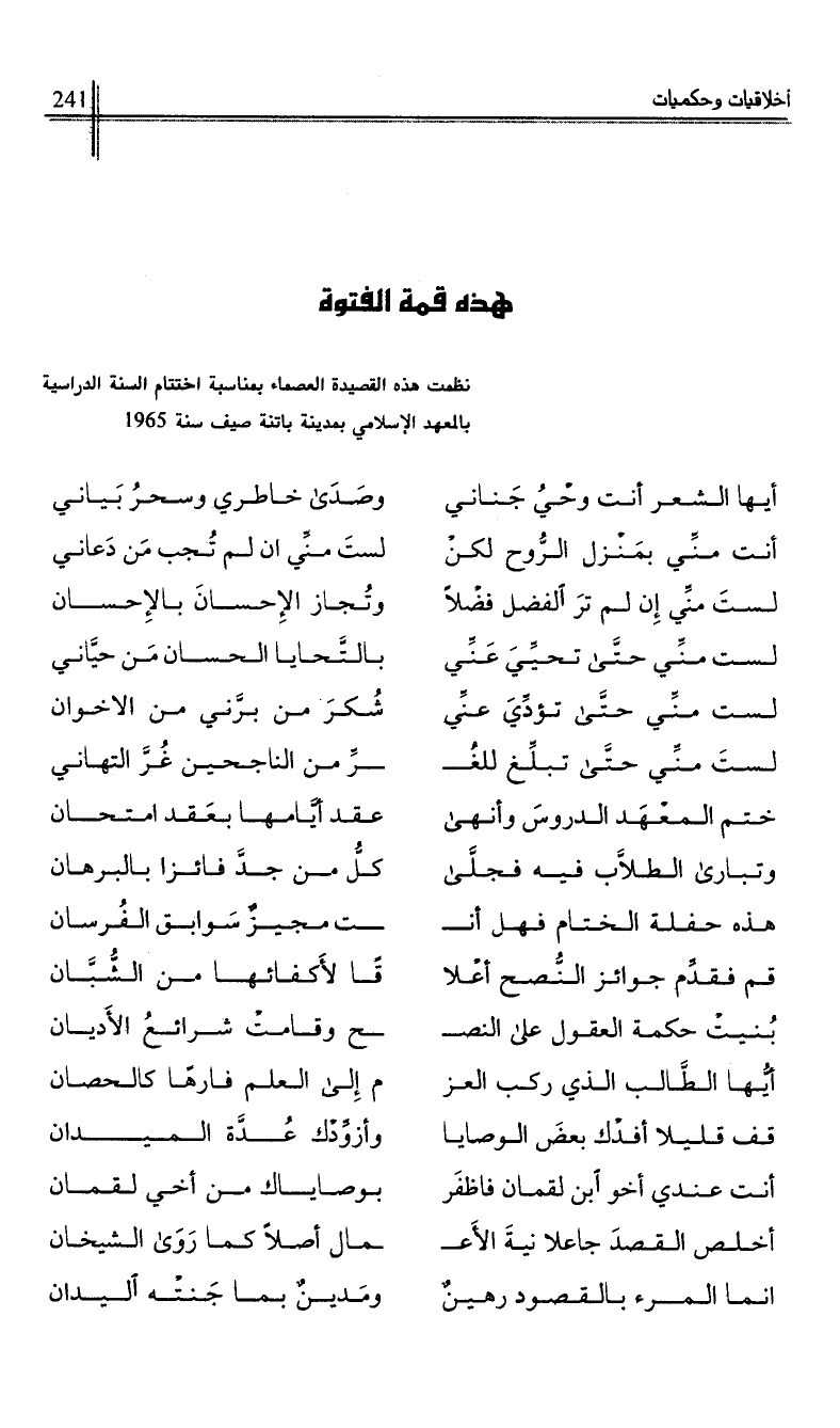 نظمت هذه القصيدة العصماء بمناسبة اختتام السنة الدراسية
