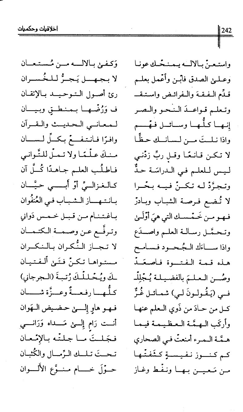 وتعلم قواعد النحو والصر …*… ف ورضها بمنطق وبيان