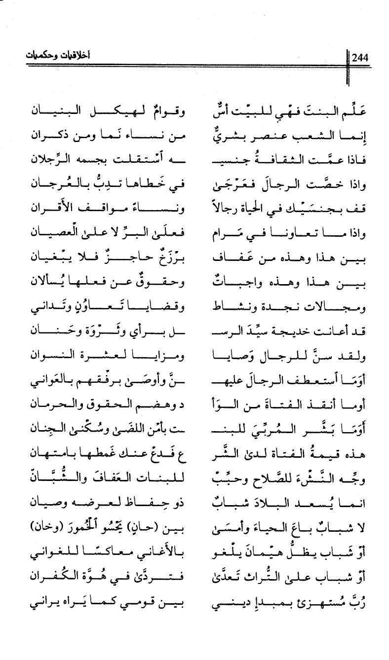 علم البنت فهي للبيت أس …*… وقوام لهيكل البنيان