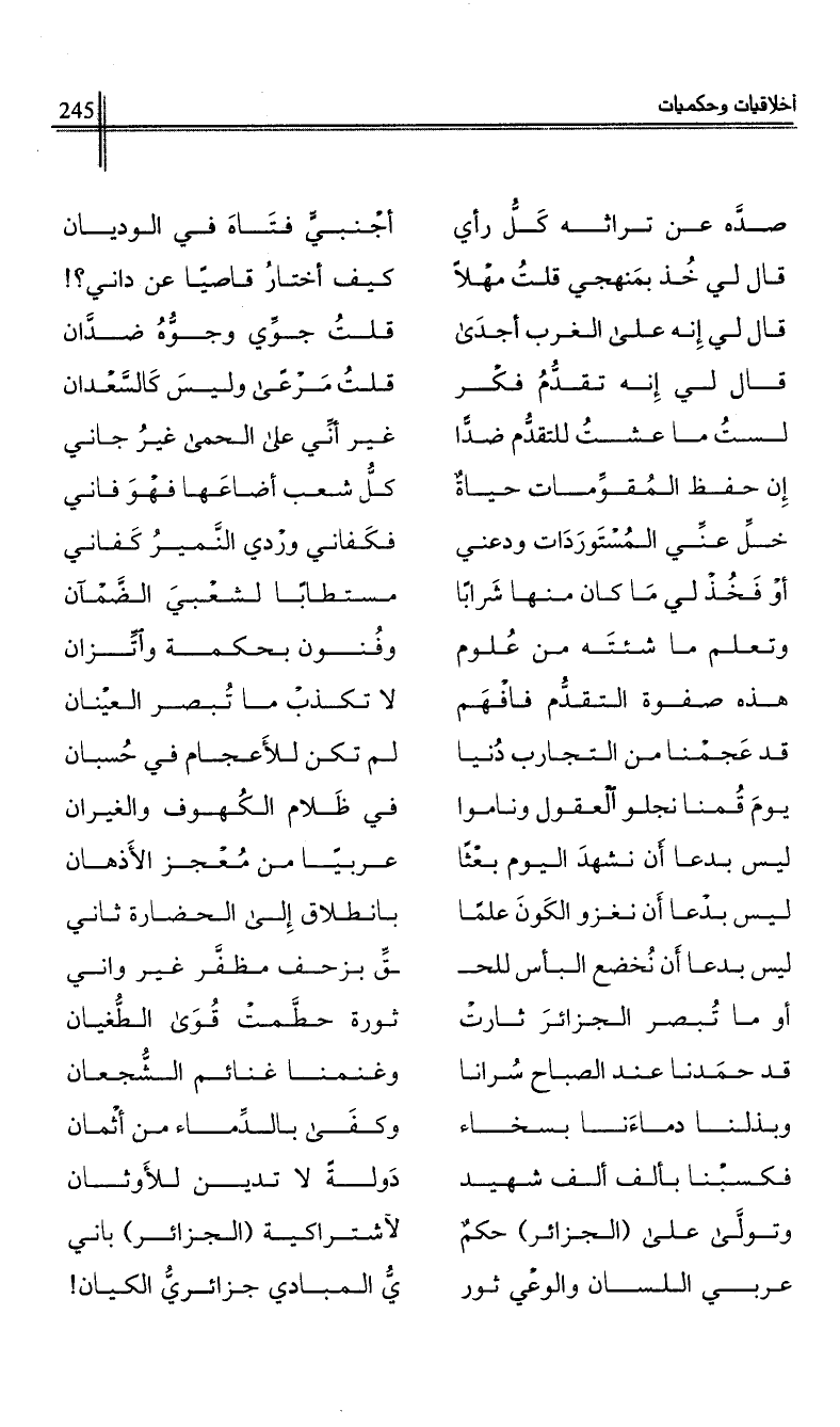 عربي اللسان والوعي ثور …*… ي المبادي جزائري الكيان!