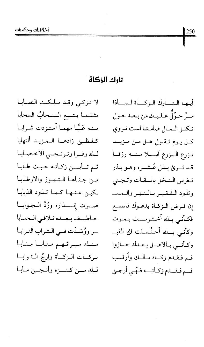 قم فقدم زكاته فهي أرجى …*… لك من كنزه وأنجى مآبا