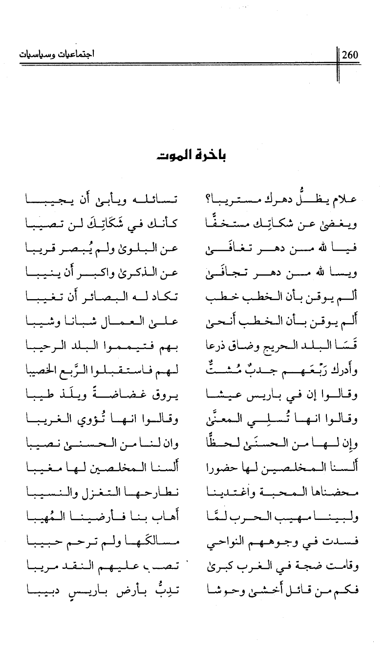 فكم من قائل أخشى وحوشا …*… تدب بأرض باريس دبيبا