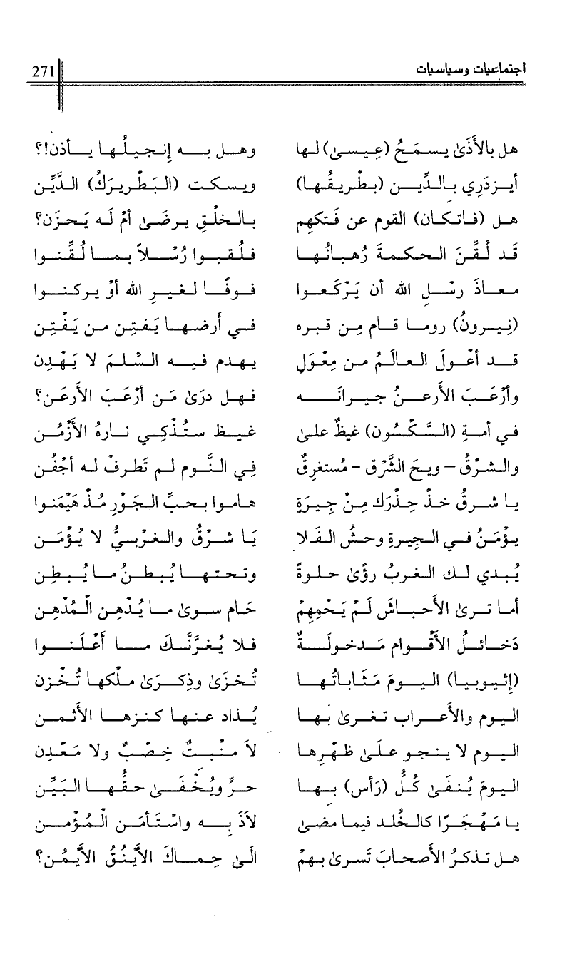 هل بالأذى يسمح (عيسى) لها …*… وهل به إنجيلها يأذن!؟