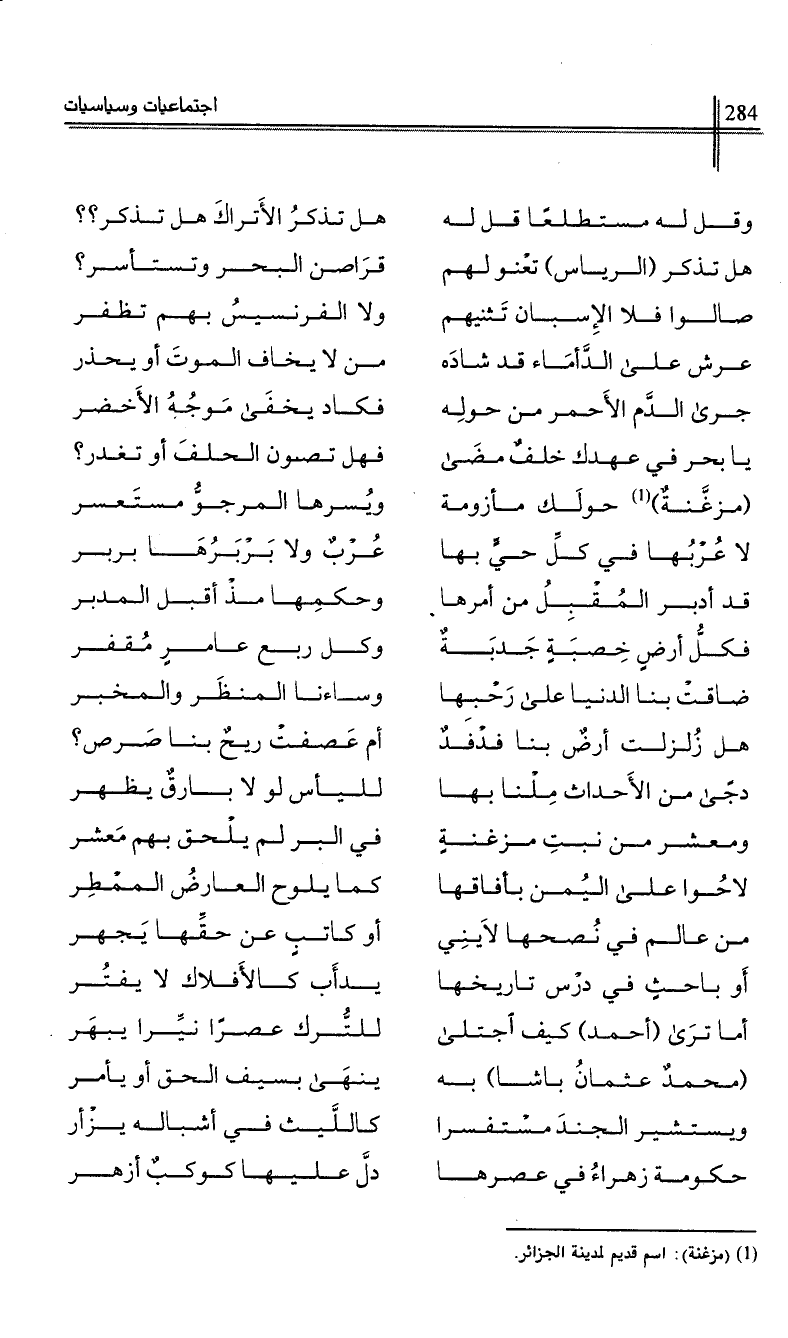 (1) (مزغنة): اسم قديم لمدينة الجزائر.