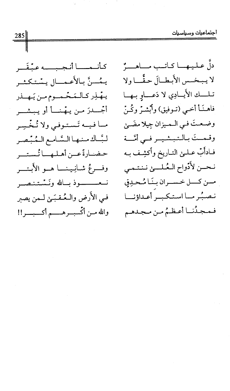 لا يبخس الأبطال حقا ولا …*… يمن بالأعمال يستكثر