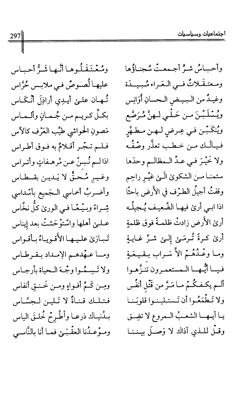 فيا أيها المستعمرون تنزهوا …*… ولا تسموا وجه الحياة بأرجاس
