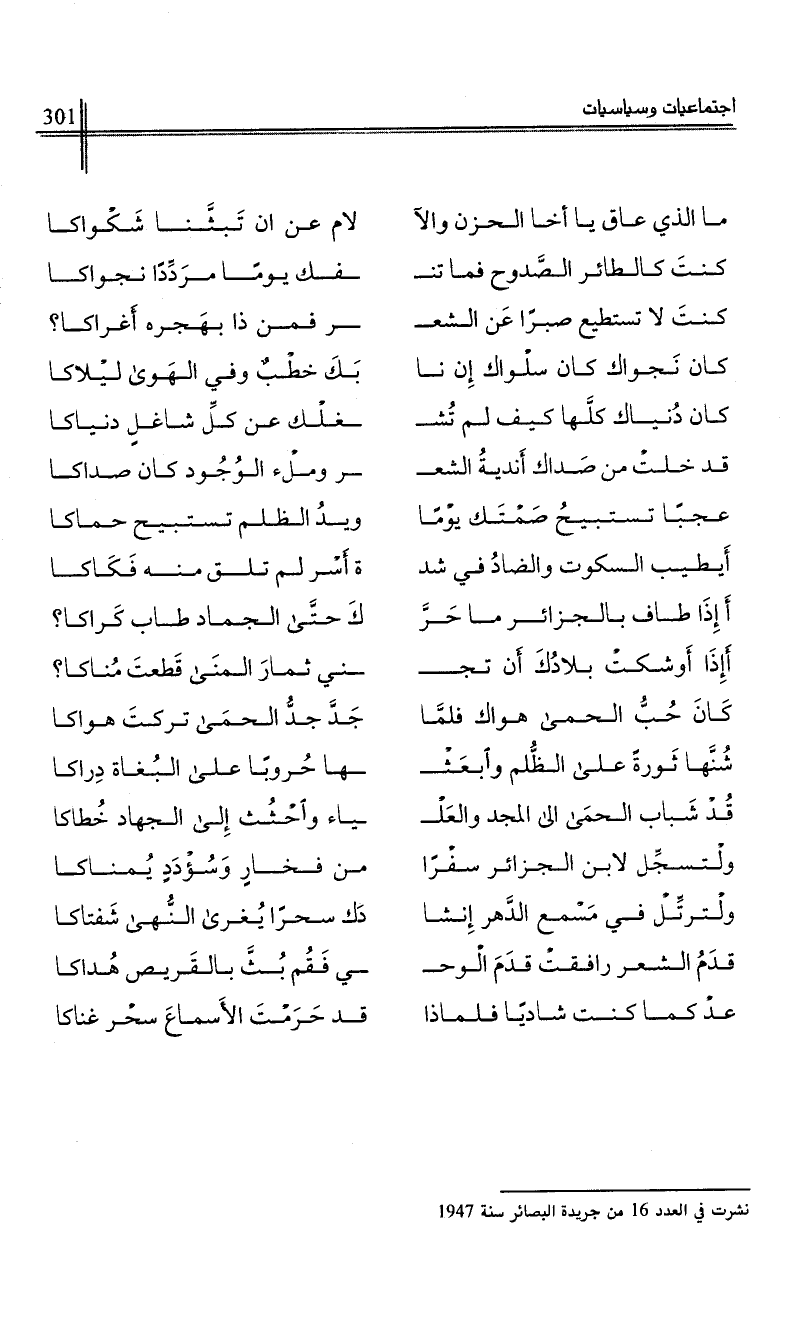نشرت في العدد 16 من جريدة البصائر سنة 1947.