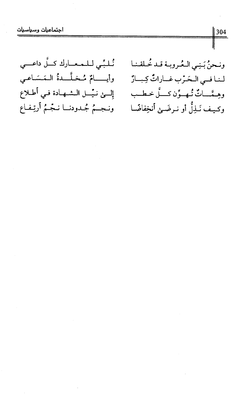 ونحن بني العروبة قد خلقنا …*… نلبي للمعارك كل داعي