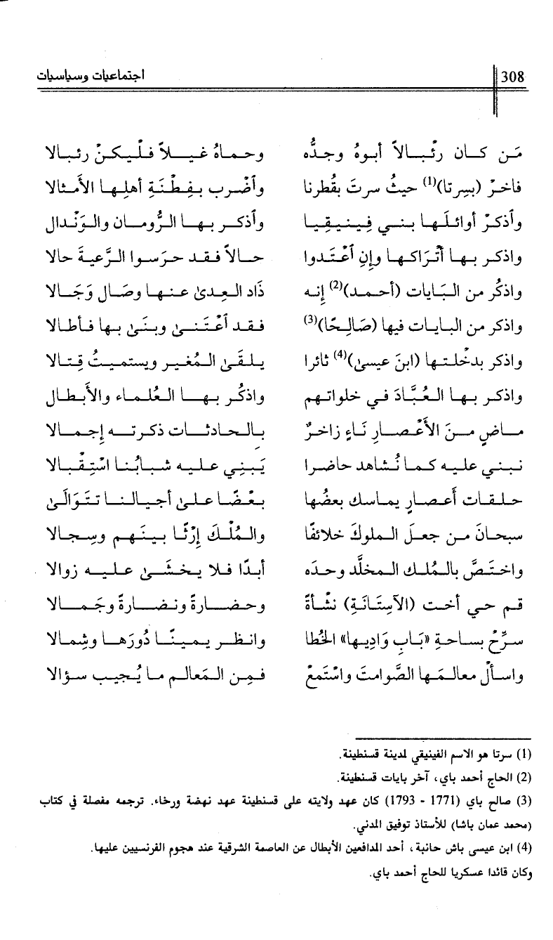 (4) ابن عيسى باش حانبة، أحد المدافعين الأبطال عن العاصمة الشرقية عند هجوم الفرنسيين عليها. وكان قائدا عسكريا للحاج أحمد باي.