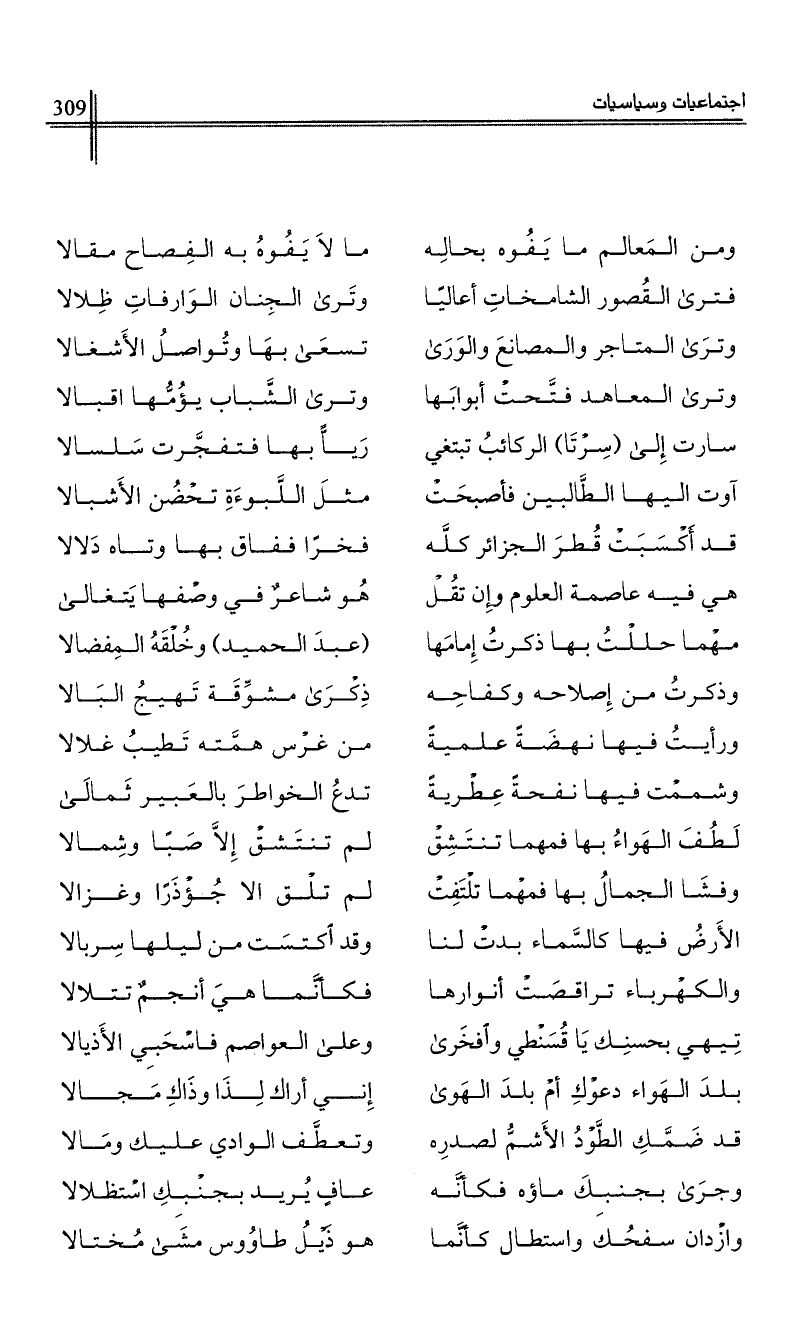 هي فيه عاصمة العلوم وإن تقل …*… هو شاعر في وصفها يتغالى