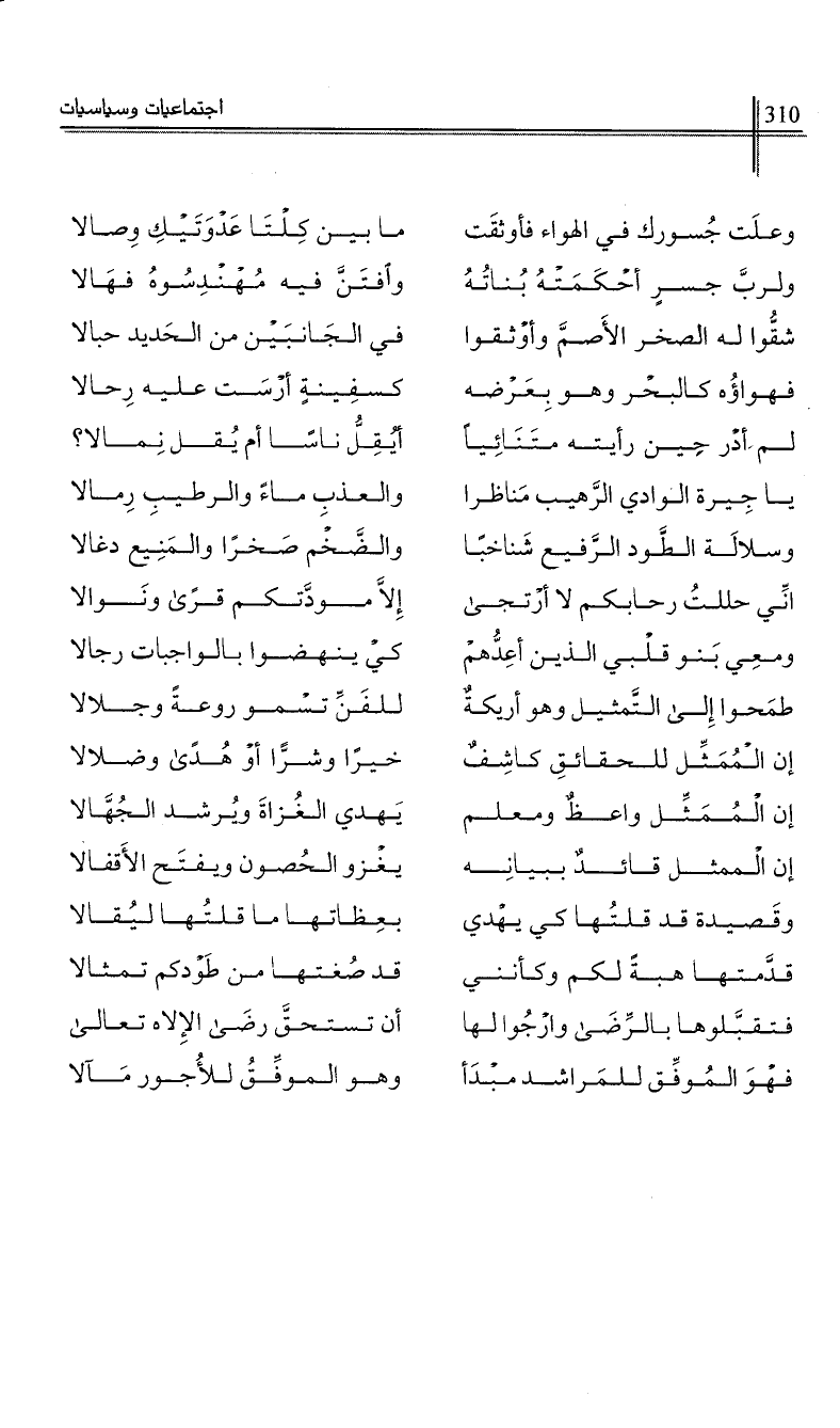 ولرب جسر أحكمته بناته …*… وافتن فيه مهندسوه فهالا