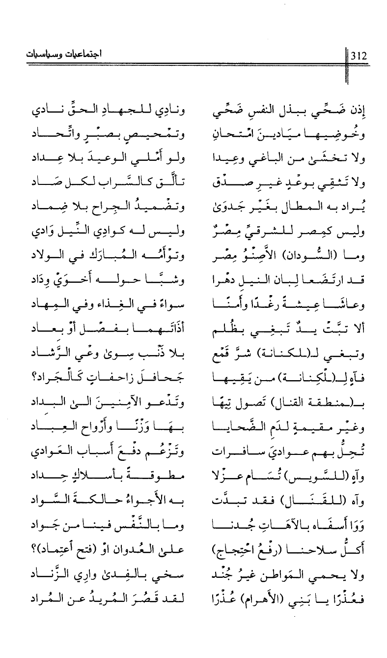 إذن ضحي ببذل النفس ضحي …*… ونادي للجهاد الحق نادي