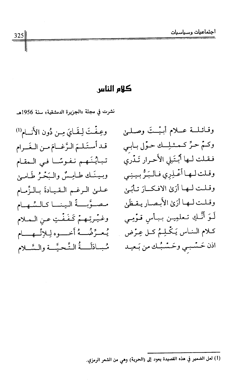 نشرت في مجلة "الجزيرة الدمشقية" سنة 1956هـ.