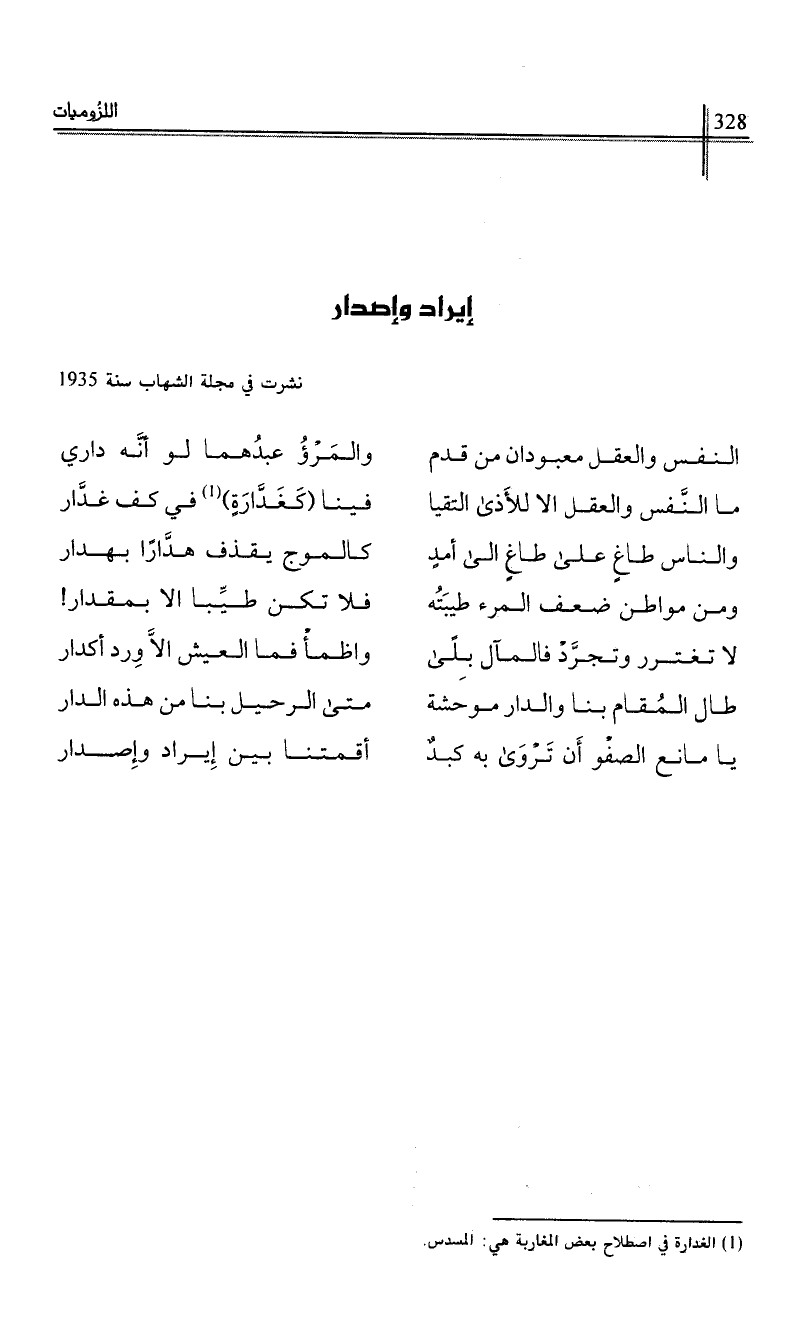 يا مانع الصفو أن تروى به كبد …*… أقمتنا بين إيراد وإصدار