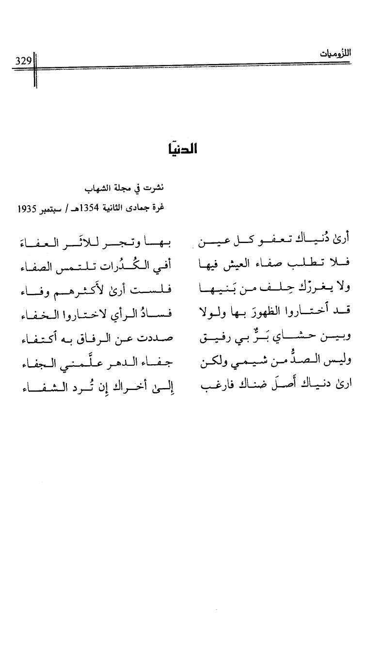 نشرت في مجلة الشهاب غرة جمادى الثانية 1354هـ / سبتمبر 1935