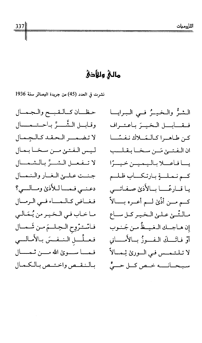 نشرت في العدد (45) من جريدة البصائر سنة 1936.