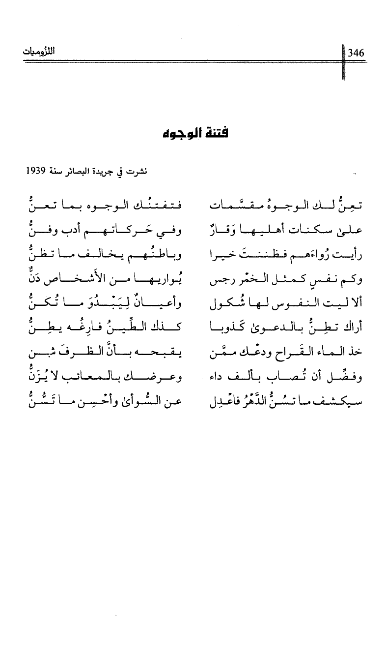 تعن لك الوجوه مقسمات …*… فتفتنك الوجوه بما تعن