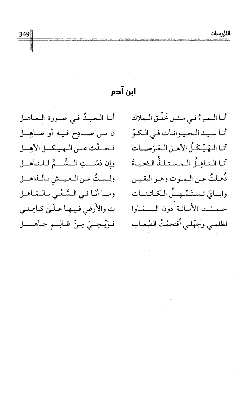 أنا المرء في مثل خلق الملاك …*… أنا العبد في صورة العاهل