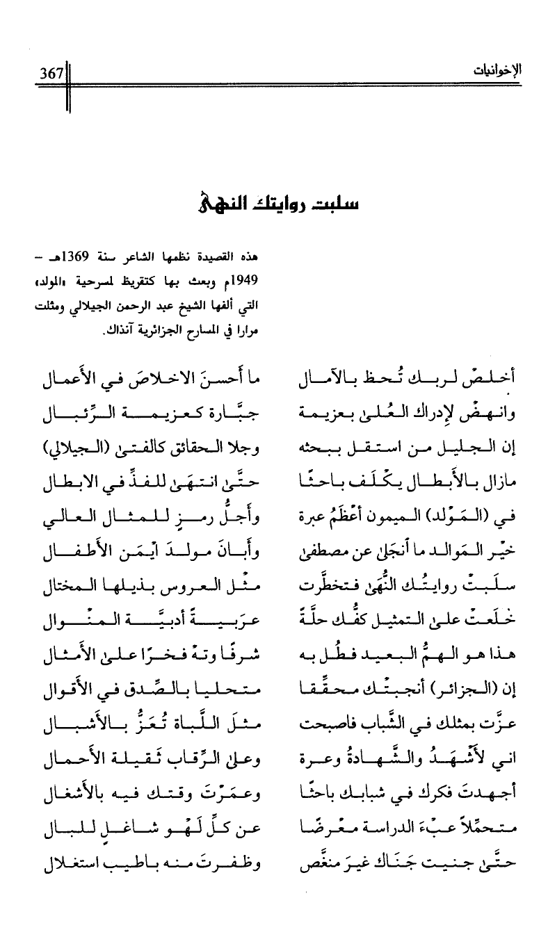 إن الجليل من استقل ببحثه …*… وجلا الحقائق كالفتى (الجيلالي)