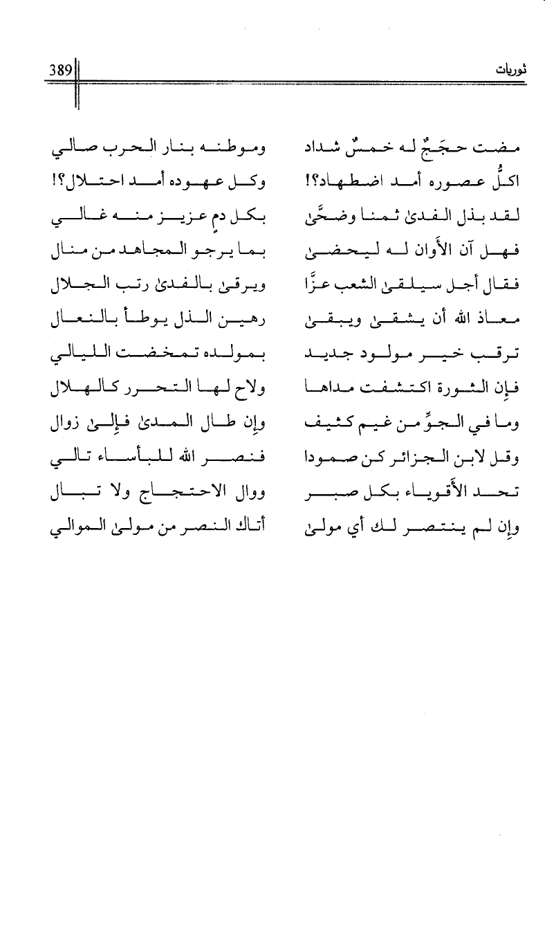 فقال أجل سيلقى الشعب عزا …*… ويرقى بالفدى رتب الجلال