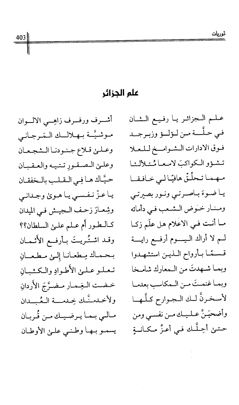 علم الجزائر يا رفيع الشان …*… أشرف ورفرف زاهي الالوان