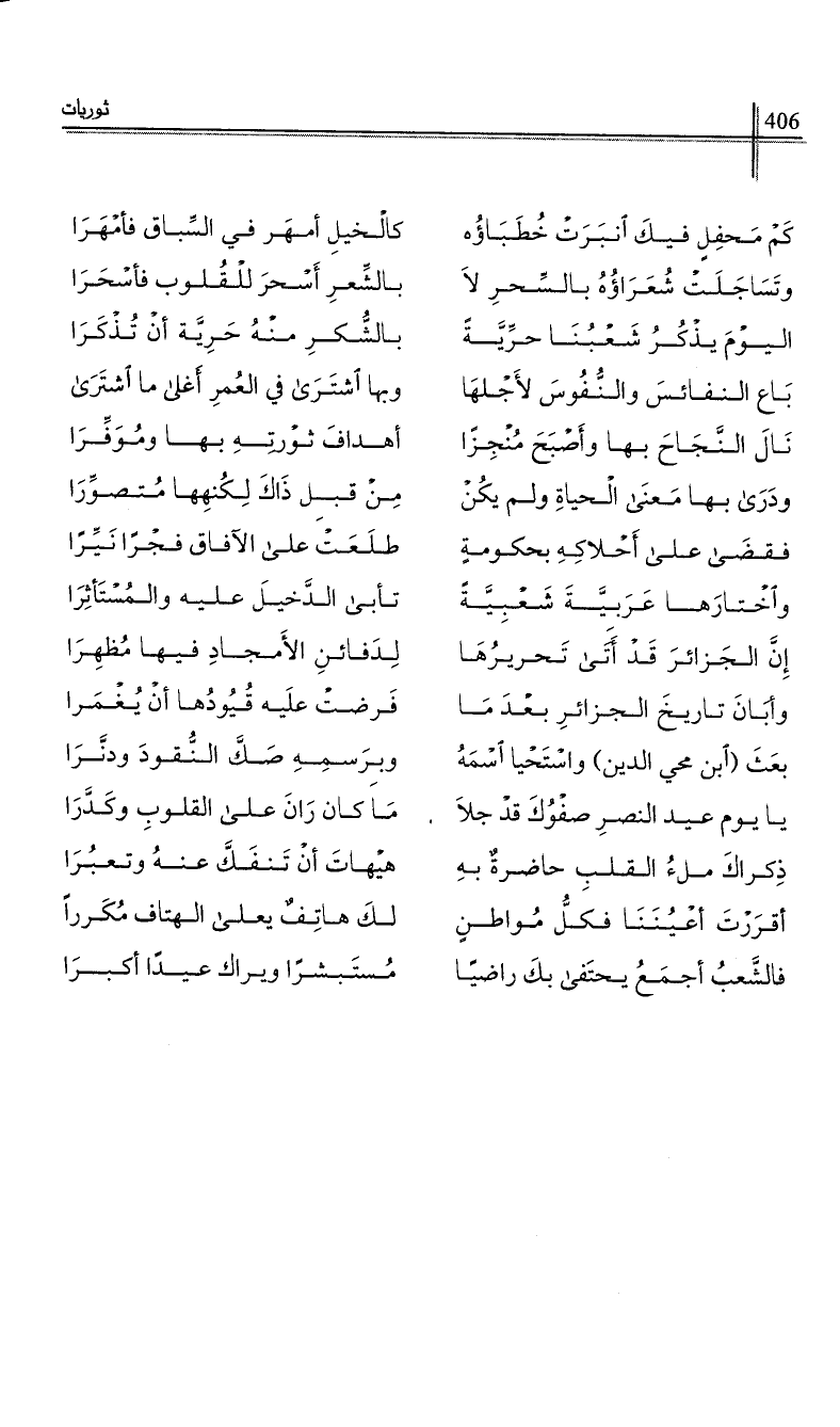 إن الجزائر قد أتى تحريرها …*… لدفائن الأمجاد فيها مظهرا