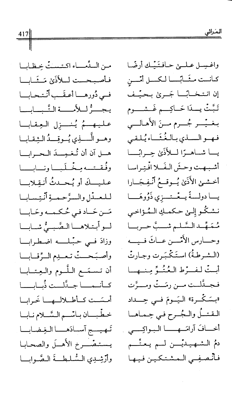 فأنصفي المشتكين فيها …*… وأرشدي السلطة الصوابا