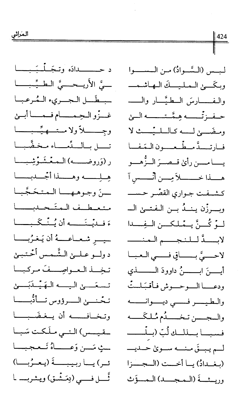 (بغداد) يا أخت (الجزا …*… ئر) يا ربيبة (يعربا)